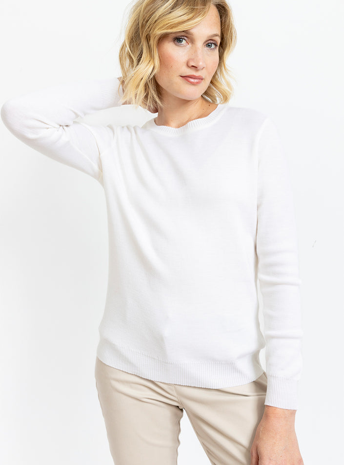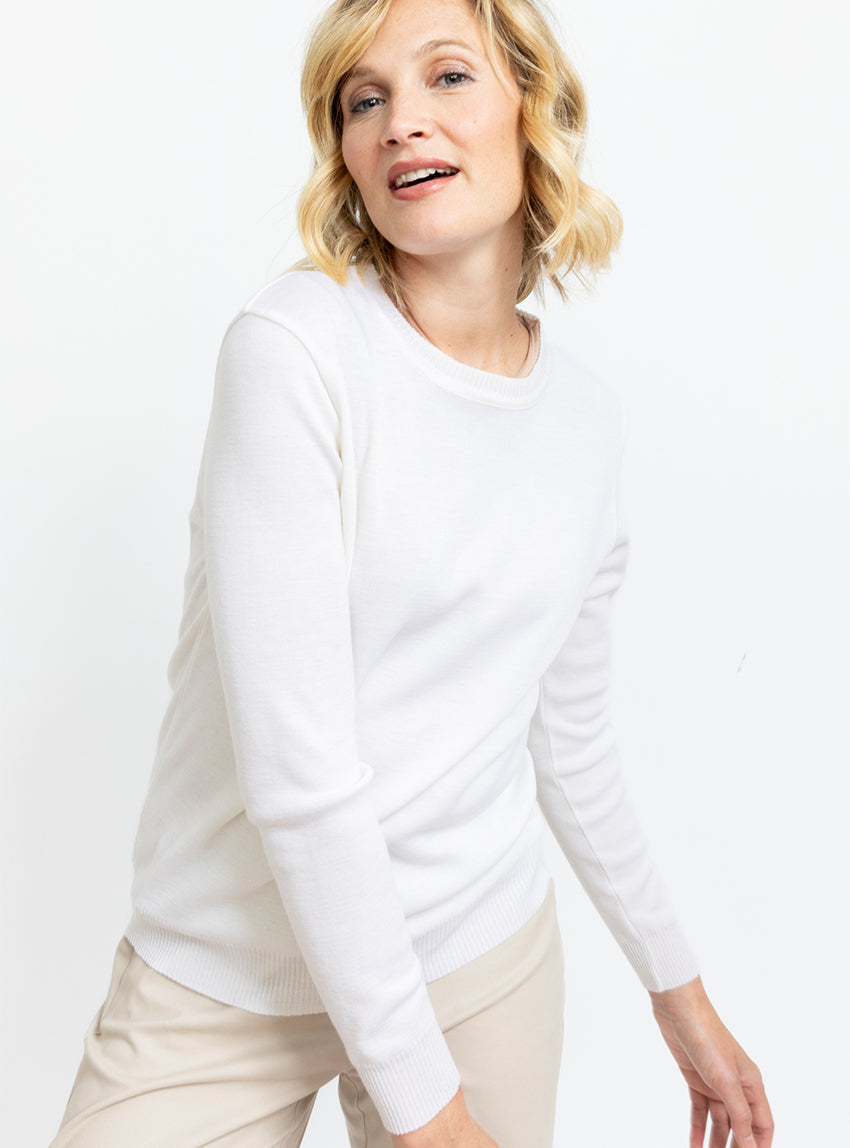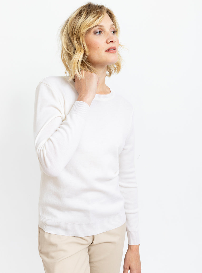 Ce pull femme col rond en 100% laine mérinos est une pièce incontournable de votre dressing. Sa coupe droite, ses manches longues et ses finitions ...