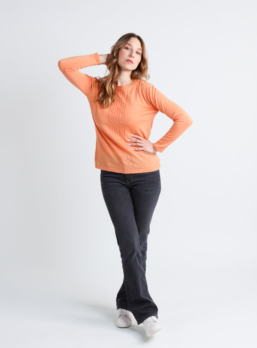 Apportez de la lumière et de la douceur à vos tenues avec ce pull torsadé en laine mérinos fine, confectionné en France. Sa coupe élégante et ses f...