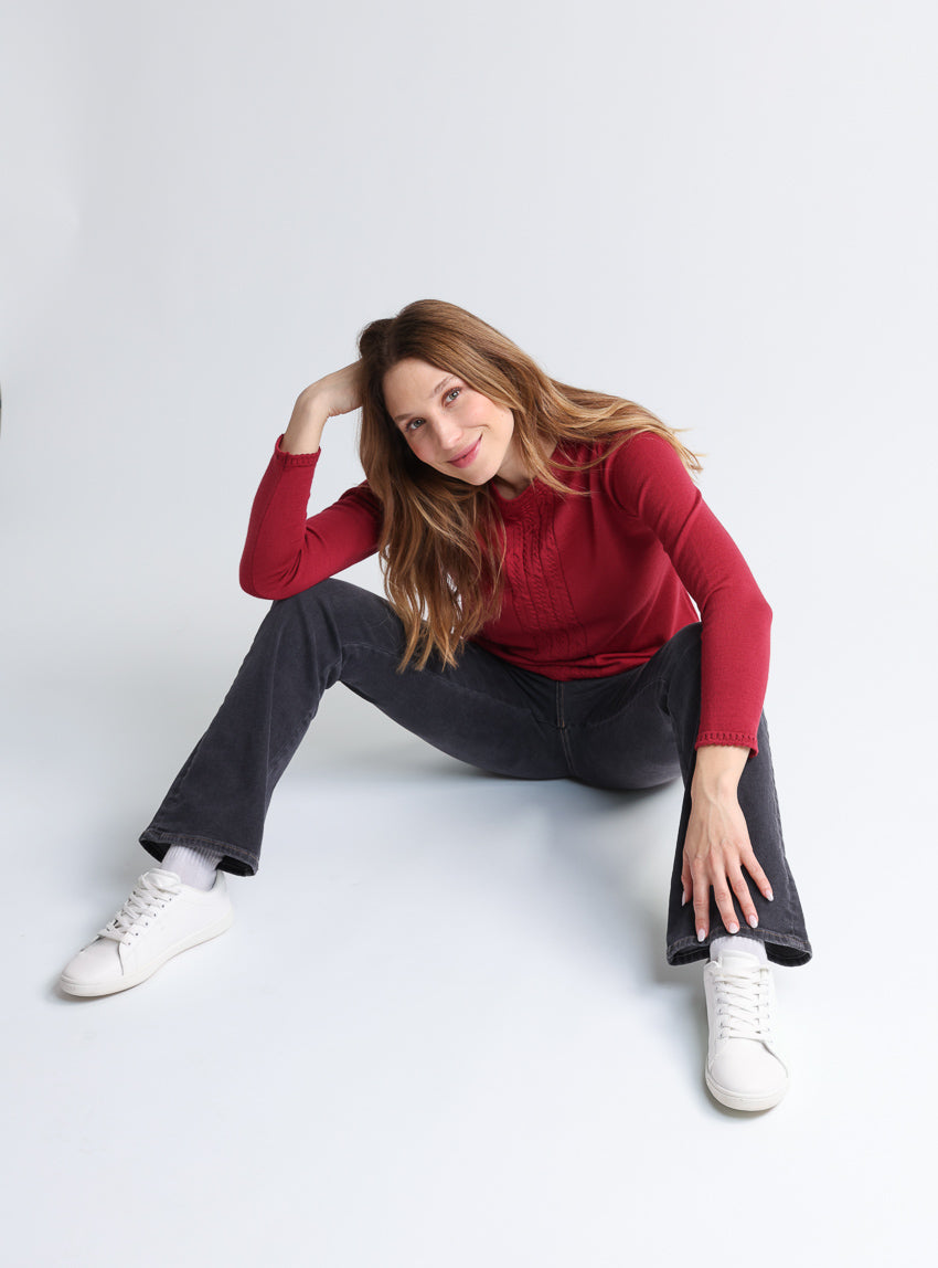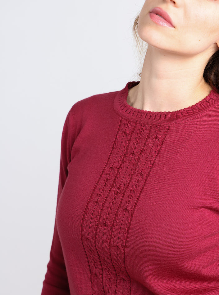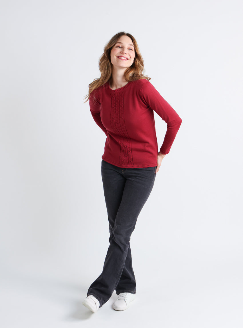 Apportez une touche d’élégance à votre quotidien avec ce pull femme en 100 % laine mérinos fine, confectionné en France. Ses torsades raffinées pla...