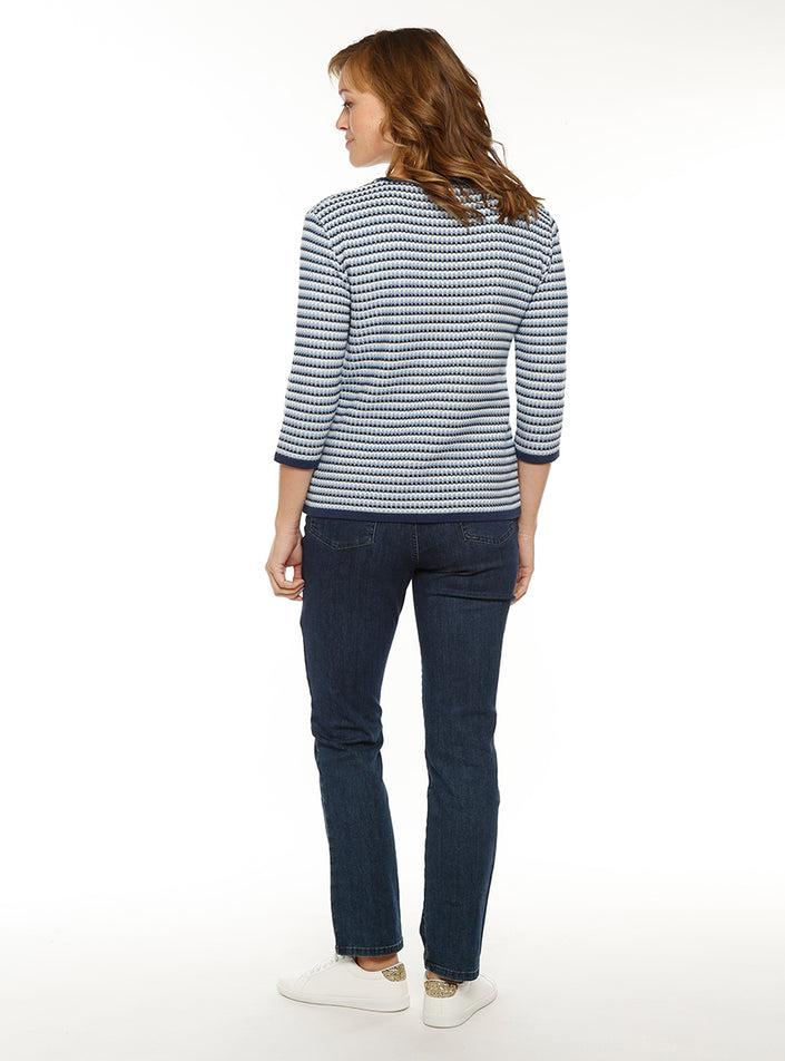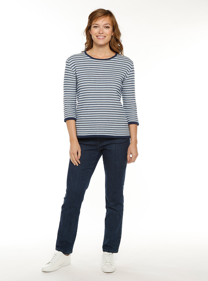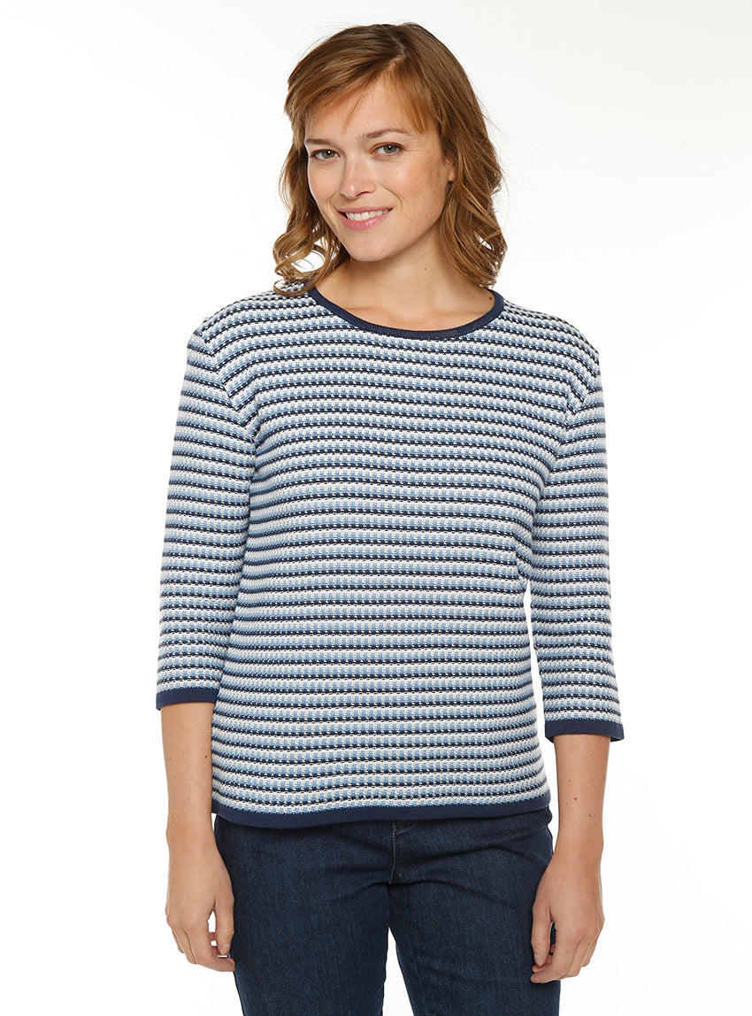 PULL FEMME TRICOLORE RAYÉ BLEU