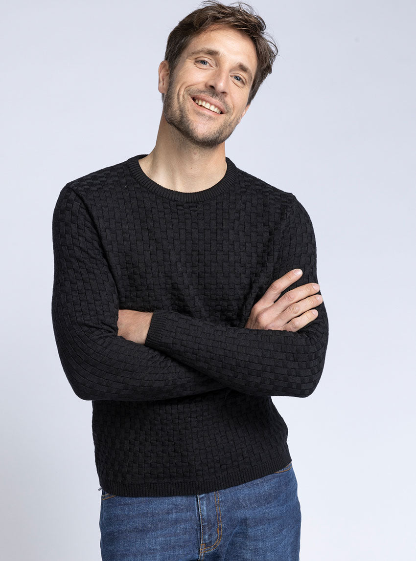 Ce modèle se distingue par sa maille fantaisie effet damier, qui donne du relief et du caractère à la pièce. Ce jeu de texture apporte une dimension graphique subtile, transformant un pull essentiel en un vêtement de style. La laine mérinos certifiée et labellisée France Terre Textile garantit un textile respectueux de la peau et de l’environnement, tout en conservant ses qualités de douceur, de respirabilité et de durabilité.