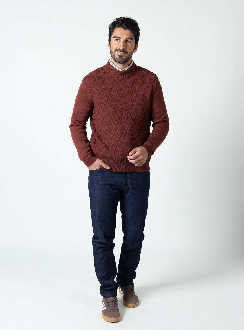 PULL HOMME EN LAINE MÉRINOS ROUGE