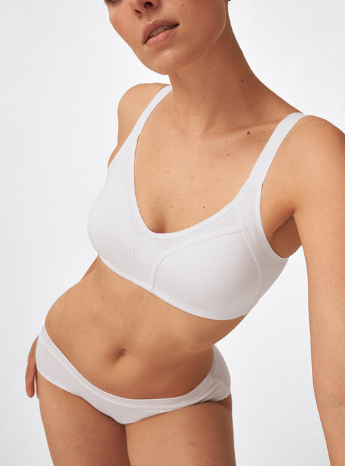 Ce soutien-gorge blanc sans armatures a été conçu pour offrir un confort optimal et un maintien naturel tout au long de la journée. Réalisé en 100 ...