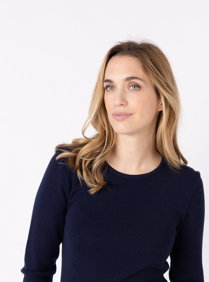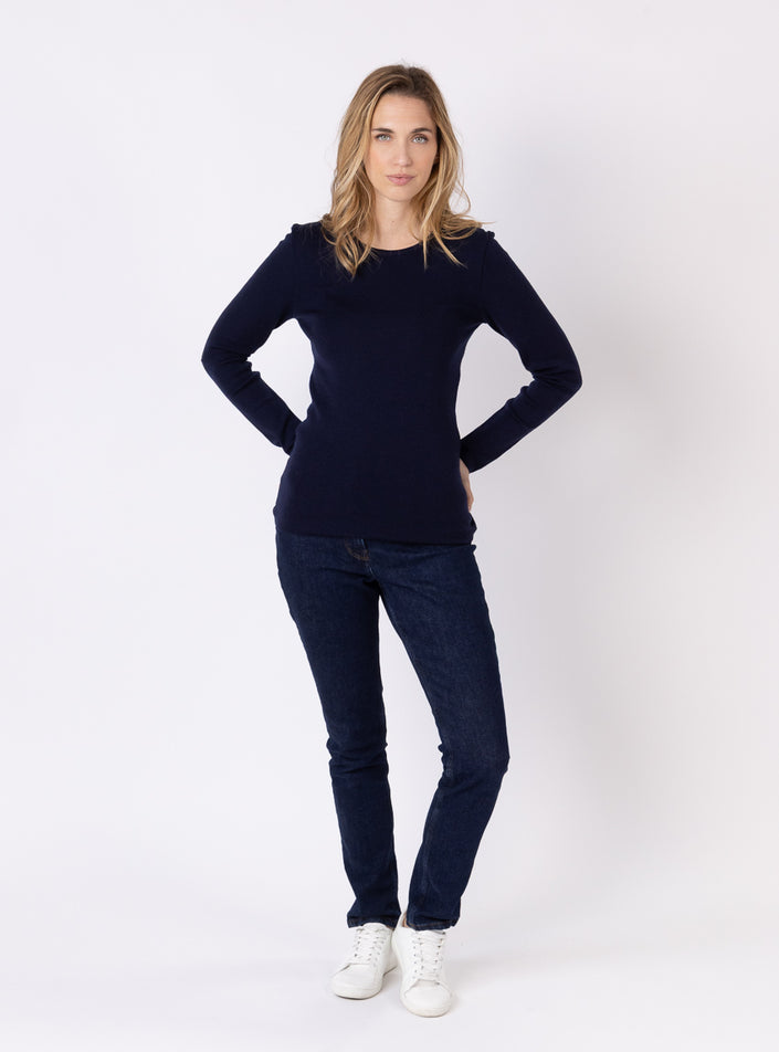 TEE-SHIRT THERMIQUE MANCHES LONGUES FEMME EN LAINE MERINOS BLEU MARINE