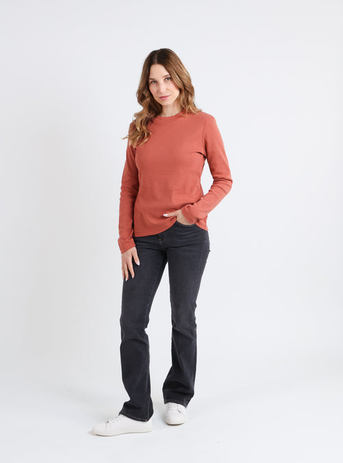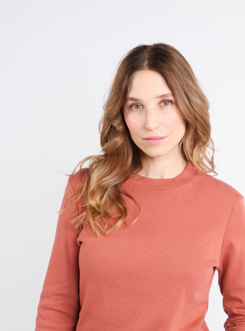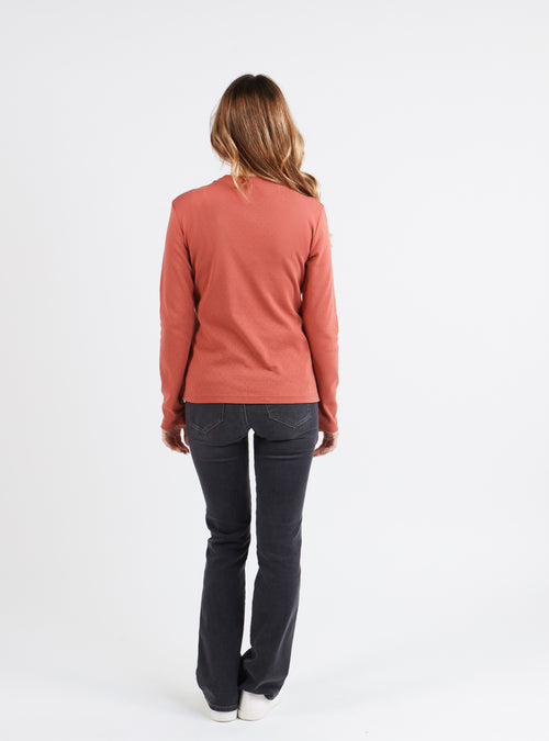 Tee-shirt thermique manches longues femme en laine merinos rouge tendre