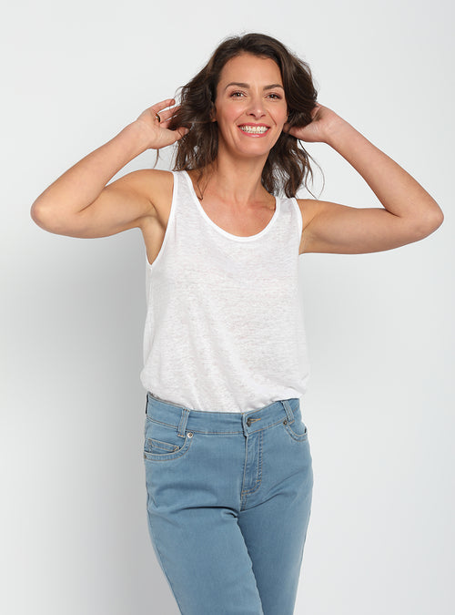 Ce tee-shirt femme en lin bleu indigo a été conçu pour conjuguer confort et raffinement avec la légèreté propre au lin. Réalisé dans une maille jersey 100% lin, il assure une excellente respirabilité et une sensation de fraîcheur, idéale pour les journées estivales. Sa coupe droite et féminine, ses manches courtes et son col rond en font une pièce polyvalente à porter aussi bien seule qu’en superposition sous une veste légère. Sa teinte bleu indigo, profonde et lumineuse, évoque les nuances de la mer et s’accorde à merveille avec un pantalon blanc, un jean brut ou une jupe fluide pour un style décontracté et élégant. Fabriqué en France à partir d’un tissu d’origine portugaise, il incarne un savoir-faire textile de qualité et une allure naturelle.