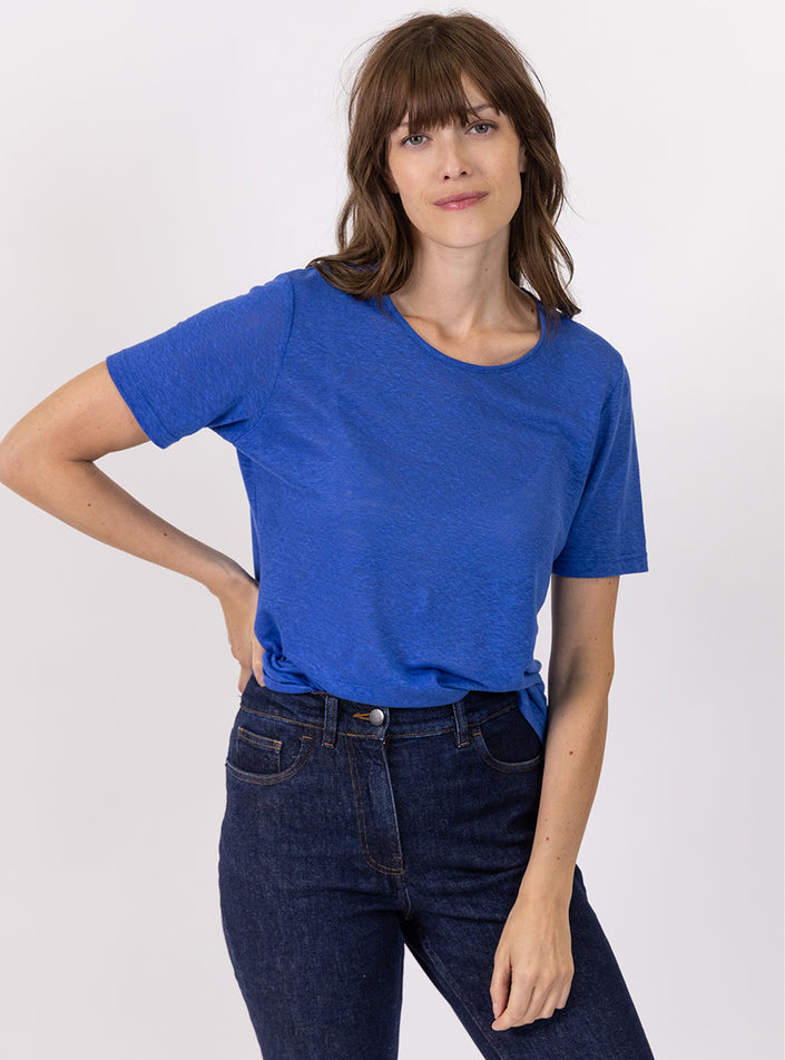 TEE-SHIRT FEMME EN LIN BLEU INDIGO