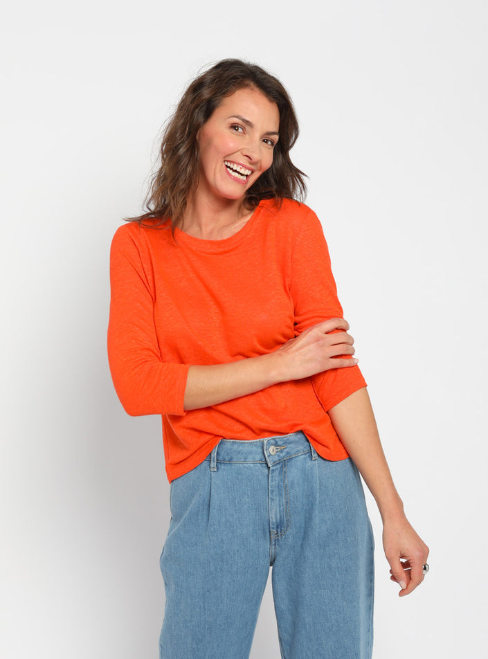 Tee-shirt femme en lin manches 3/4 orange agrume