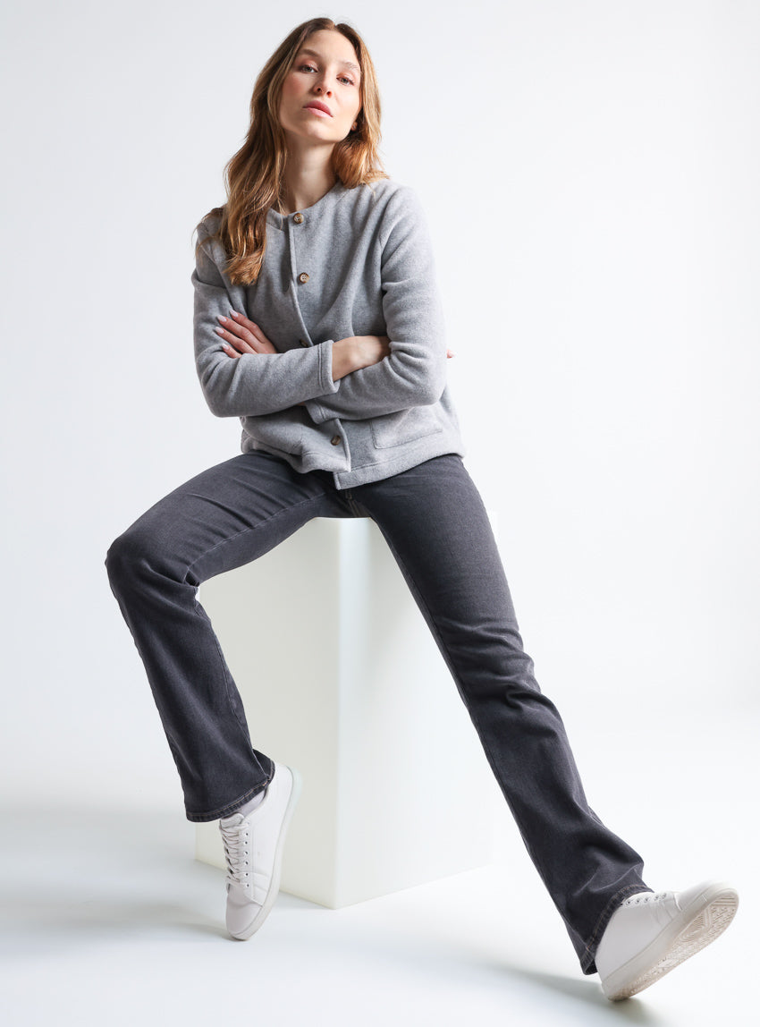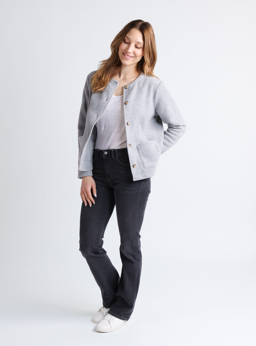 Dans son coloris gris intemporel, cette veste se marie facilement à toutes vos tenues. Associez-la à un jean brut pour un look décontracté ou à un pantalon noir pour une allure plus chic. Une pièce polyvalente et pratique qui saura vite devenir un indispensable de vos journées fraîches.