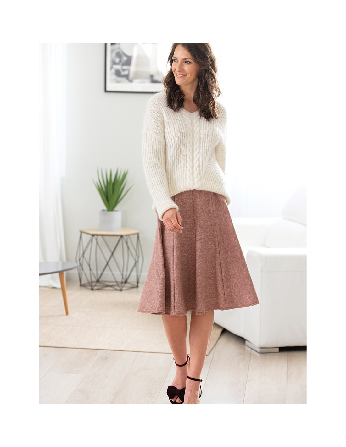 Jupe femme en tissu chevrons, élégance hivernale et confort made in France.