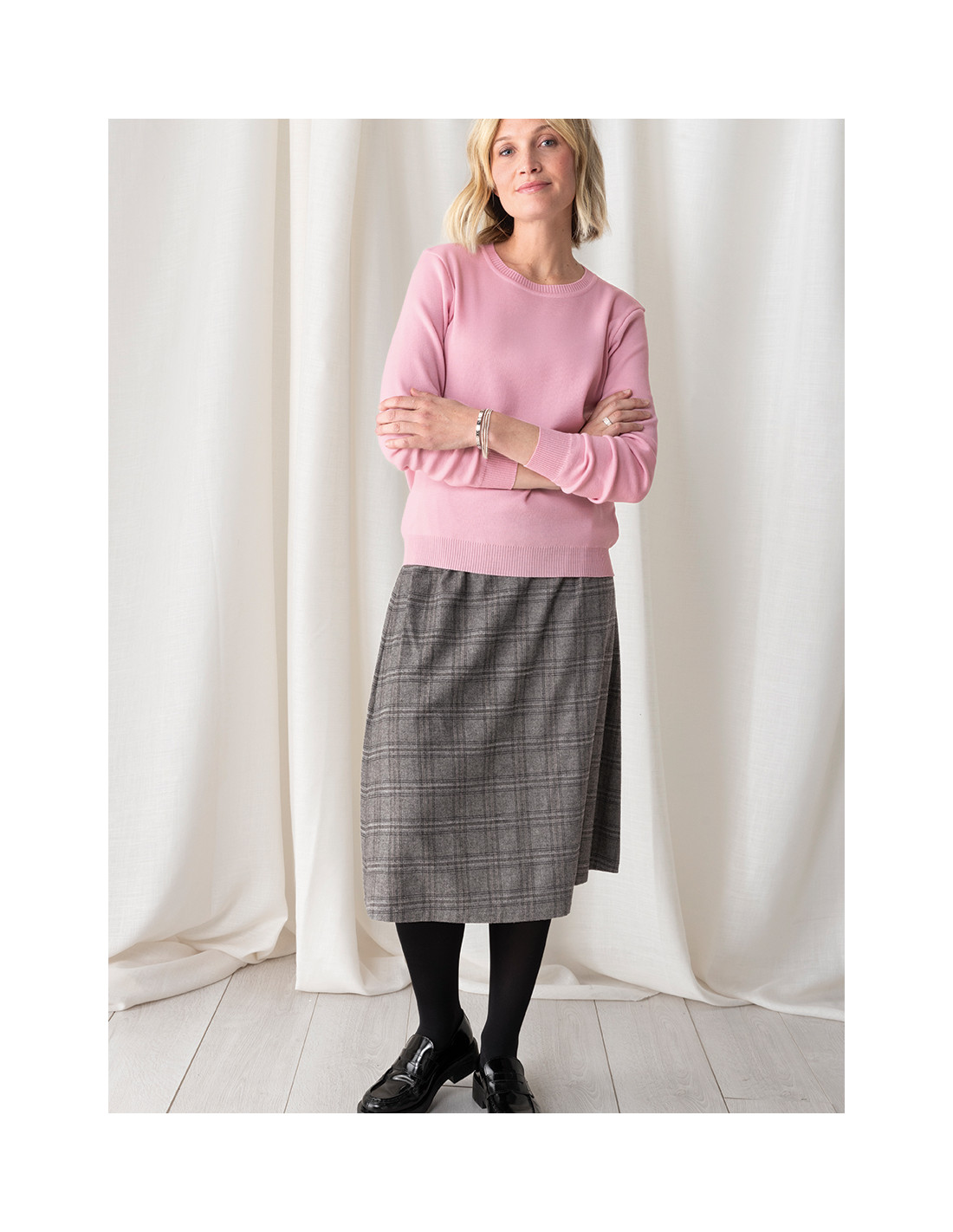 L’élégance graphique des carreaux dans une jupe confortable et 100 % française.