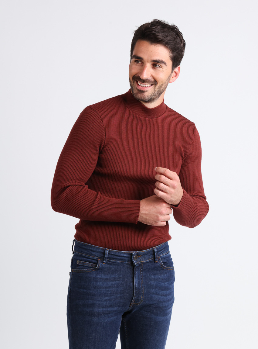 Tee-shirt en laine mérinos épais col cheminée 15 B Solfin Fabriqué en France