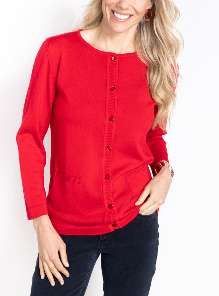 Cardigan 100% laine mérinos, poches plaquées sur le devant.