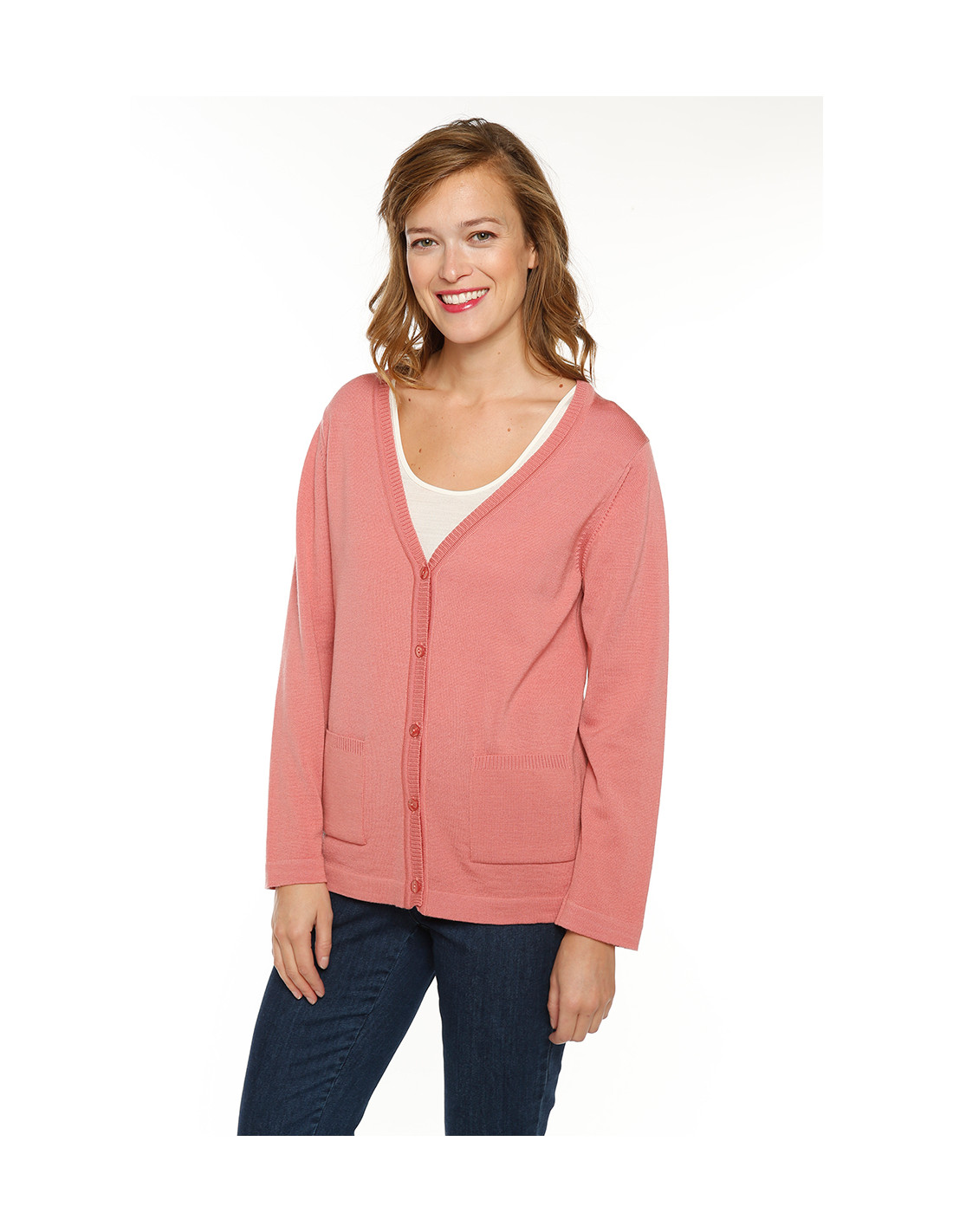 Taille grand. Jolies diminutions à l'emmanchure. Poches pratiques.