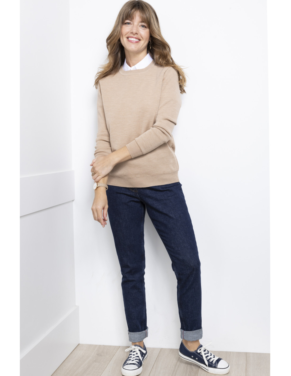 Pull femme chaud 100% laine fine mérinos, fabriqué en France.