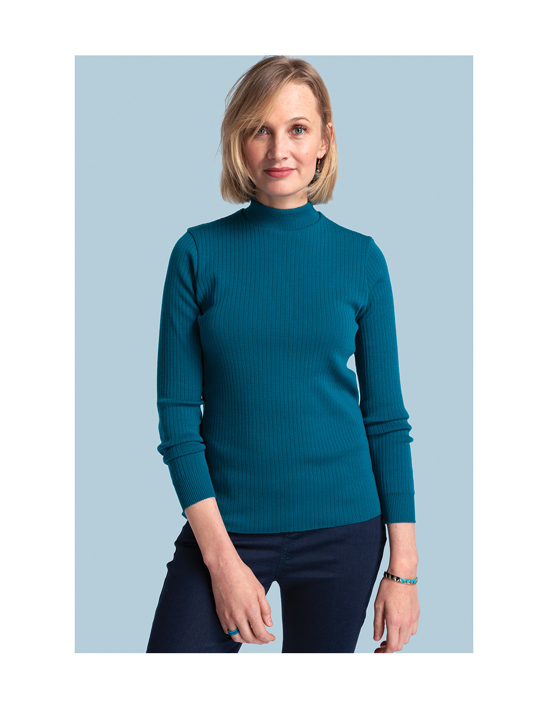 70% laine. 30% soie. Fabriqué en FRANCE. Pull fin femme en laine et soie se porte seul à même la peau, sous un gilet ou une veste.