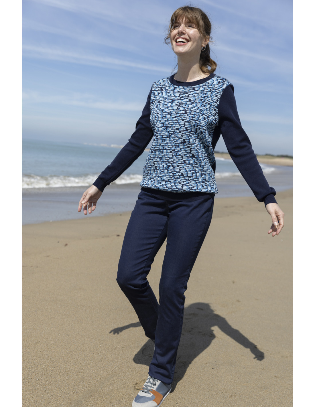 Pull jacquard femme, 100% laine mérinos, fabriqué en France.